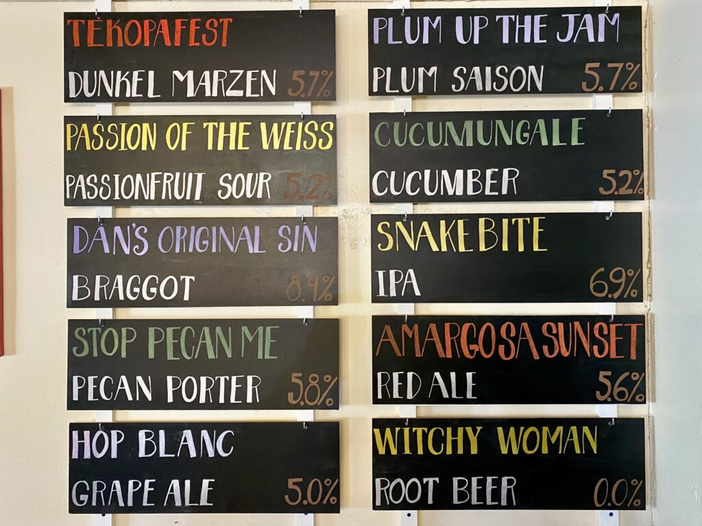 Death Valley Brewing is located in beautiful “Downtown Tecopa” right on the Old Spanish Trail Hwy. It’s the last chance for a locally made cold one before you enter the park or visit the healing mineral waters, sand dunes… also home to the original infamous “Snake Pit” Saloon. Come join us for a beer, have a wood fired pizza from next door: The Kit Fox Cafe (Scheduled to reopen October 1, 2024.) and take in the magical living history of our community.